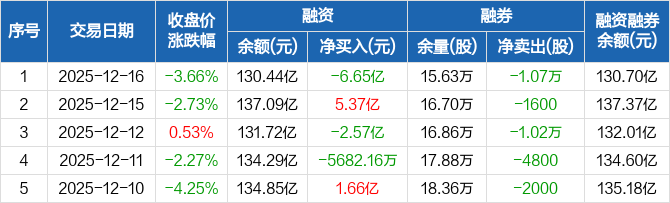 阳光电源:融资净偿还6.65亿元,两市排名第二(12-16)