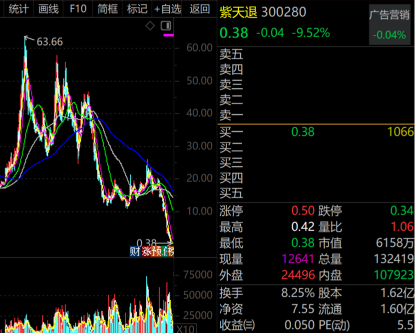 从个股表现来看,9月有3300多只个股下跌。其中,最熊股票是紫天退(300280),9月累计暴跌超86%,股价频频创出历史新低。