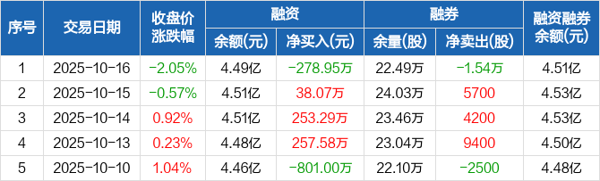 苏交科融资融券信息显示,2025年10月16日融资净偿还278.95万元;融资余额4.49亿元,较前一日下降0.62%