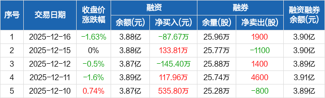 苏交科:融资净偿还87.67万元,融资余额3.88亿元(12-16)