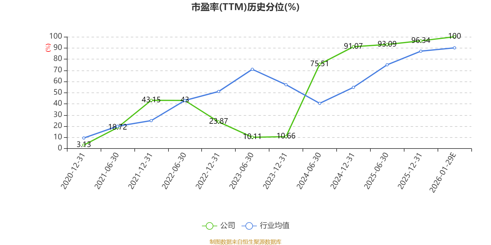 以本次披露业绩预告均值计算,公司近年市盈率(TTM)图如下所示: