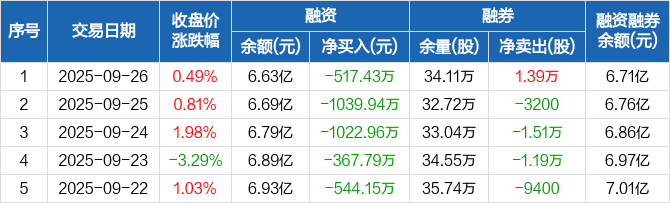 国瓷材料:连续9日融资净偿还累计1.53亿元(09-26)
