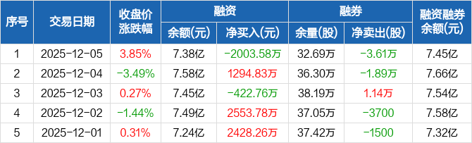 国瓷材料:融资净偿还2003.58万元,融资余额7.38亿元(12-05)