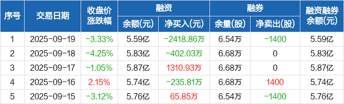 飞利信:融资净偿还2418.86万元,融资余额5.59亿元(09-19)