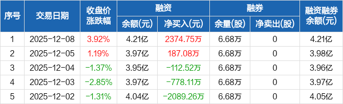 飞利信:融资净买入2374.75万元,融资余额4.21亿元(12-08)