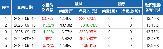 荣科科技:融资净买入3280.2万元,融资余额13.46亿元(09-19)