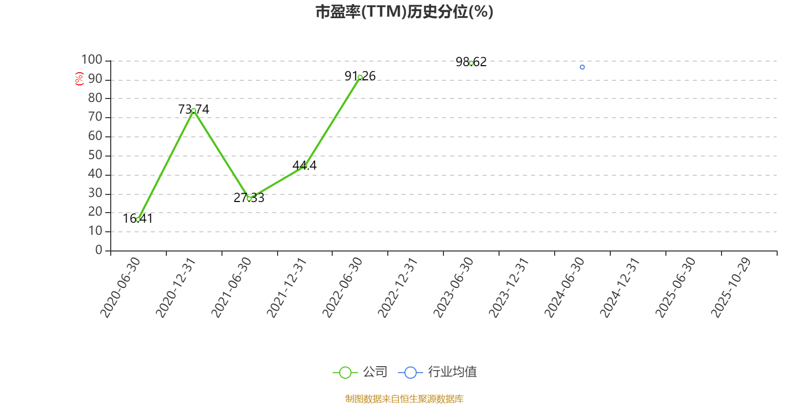市盈率、市净率为负时,不显示当期分位数,会导致折线图中断。