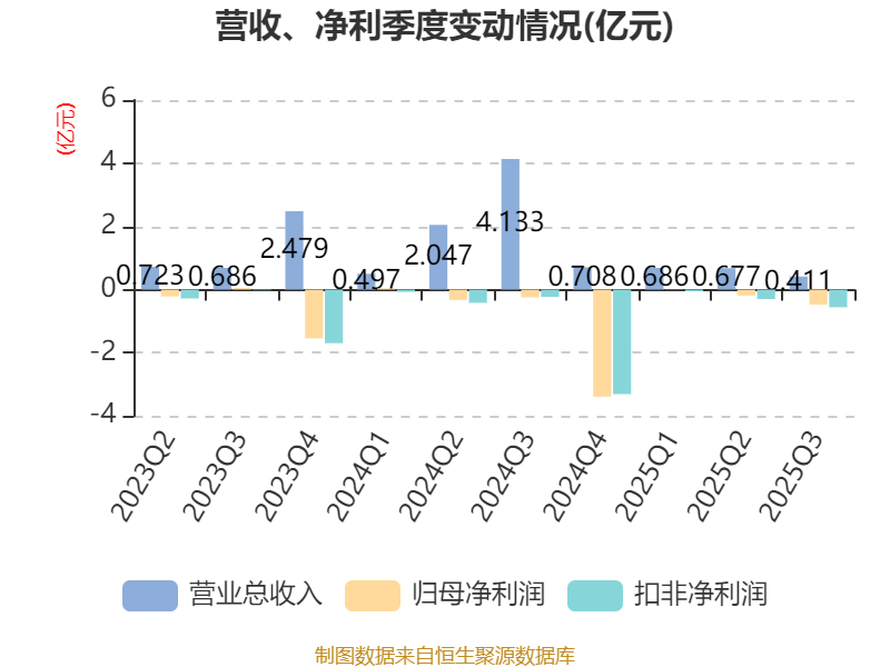 中证智能财讯百纳千成(300291)10月30日披露2025年第三季度报告。前三季度公司实现营业总收入1.77亿元,同比下降73.43%;归母净利润亏损6753.81万元,上年同期亏损5408万元;扣非净利润亏损9141.33万元,上年同期亏损7272.98万元;经营活动产生的现金流量净额为-1.48亿元,上年同期为-2.04亿元;报告期内,百纳千成基本每股收益为-0.0717元,加权平均净资产收益率为-2.18%。