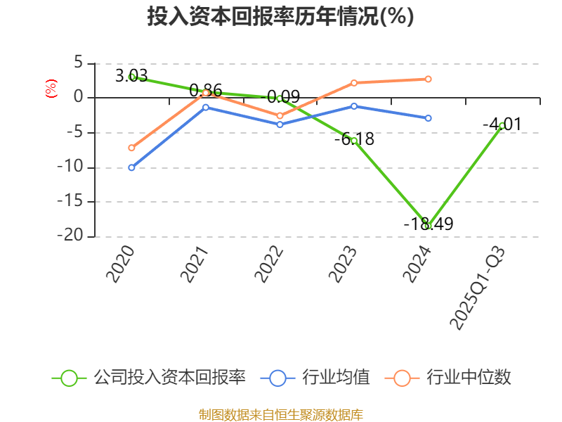 盈利能力方面, 2025年前三季度公司加权平均净资产收益率为-2.18%,同比下降0.67个百分点。公司2025年前三季度投入资本回报率为-4.01%,较上年同期上升0.09个百分点。