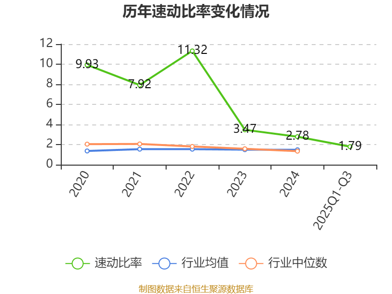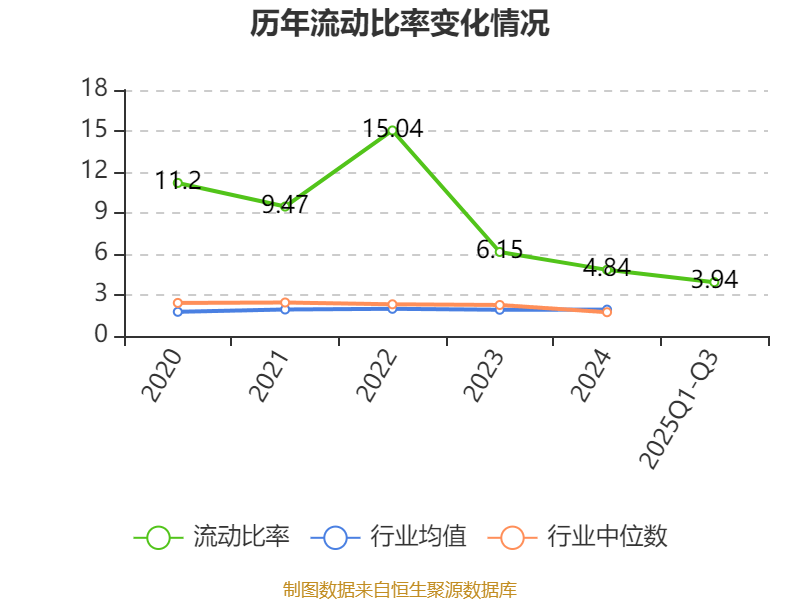 2025年前三季度,公司流动比率为3.94,速动比率为1.79。