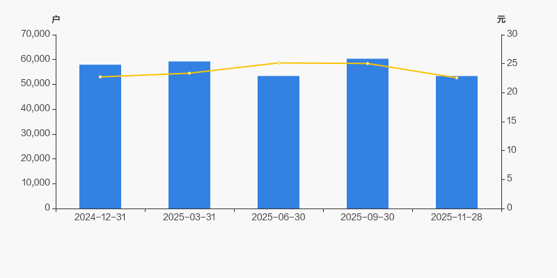 2024年12月31日至今,公司股东户数有所下降,区间跌幅为7.90%。2024年12月31日至2025年11月28日区间股价下降0.70%。
