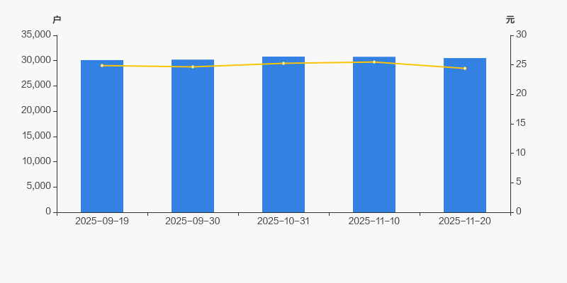 2025年9月19日至今,公司股东户数有所增长,区间涨幅为1.33%。2025年9月19日至2025年11月20日区间股价下降1.92%。