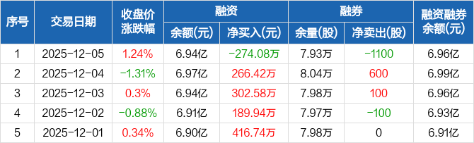 博雅生物:融资净偿还274.08万元,融资余额6.94亿元(12-05)