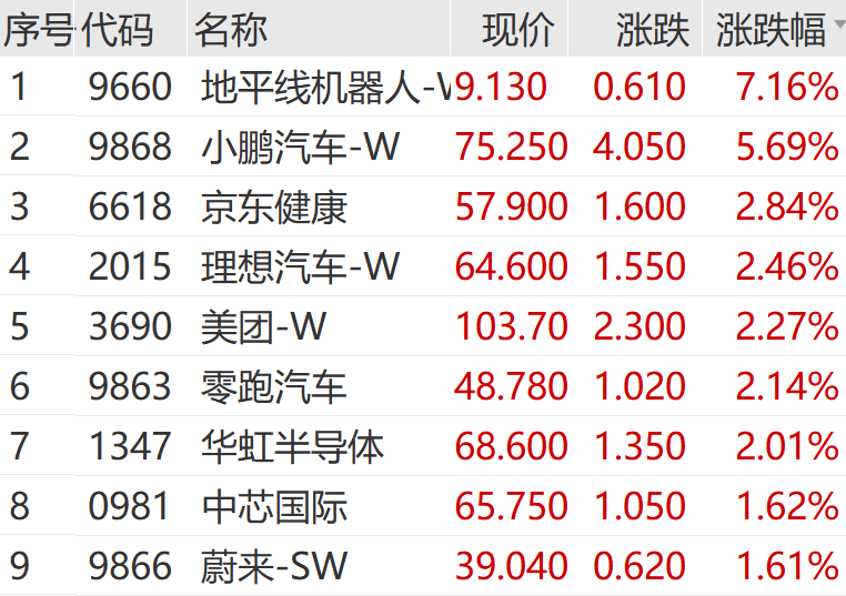 港股市场上午同步走强,截至午间收盘,恒生科技指数涨超1%。地平线机器人涨超7%,领涨恒生科技指数成份股。