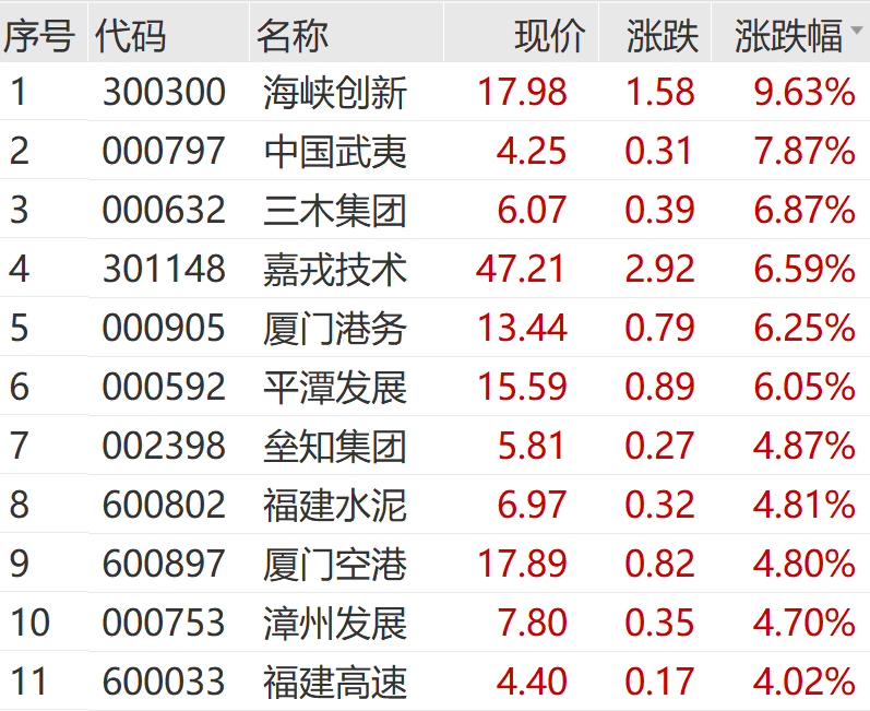 个股方面,海峡创新、中国武夷、三木集团等多股午前冲高。