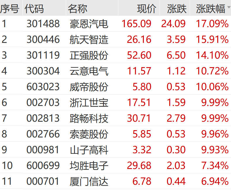 12月19日上午,汽车板块持续活跃,车路云、智能驾驶等方向火热。路畅科技、威帝股份等多股涨停,航天智造、云意电气等涨超10%。