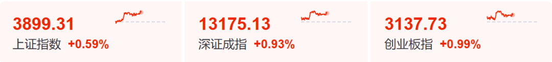 12月19日上午,A股市场震荡走高,主要指数全线飘红。截至午间收盘,上证指数涨0.59%,深证成指涨0.93%,创业板指涨0.99%。