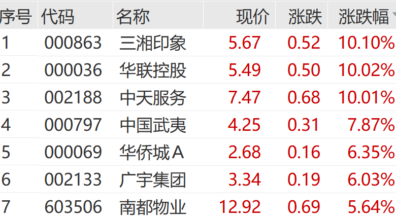 另外,上午地产股局部走高,三湘印象、华联控股、中天服务纷纷涨停。