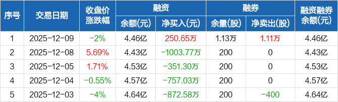 同有科技:融资净买入250.65万元,融资余额4.46亿元(12-09)