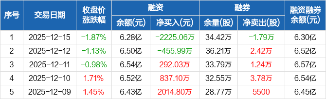聚飞光电:融资净偿还2225.06万元,融资余额6.28亿元(12-15)