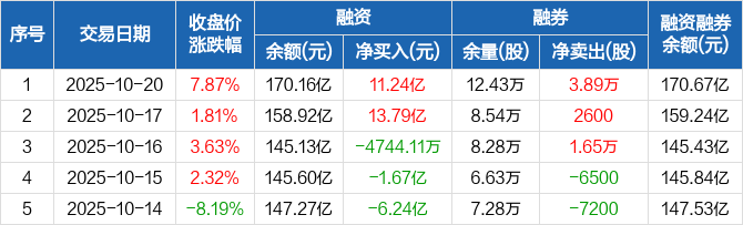 中际旭创:融资余额170.16亿元,创历史新高(10-20)