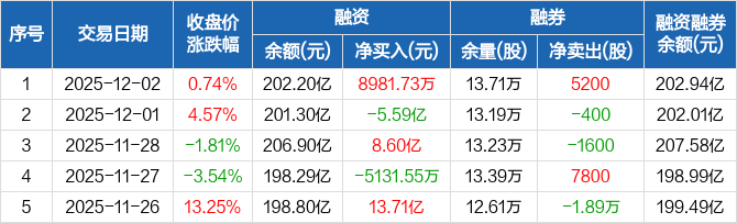 中际旭创:融资净买入8981.73万元,融资余额202.2亿元(12-02)
