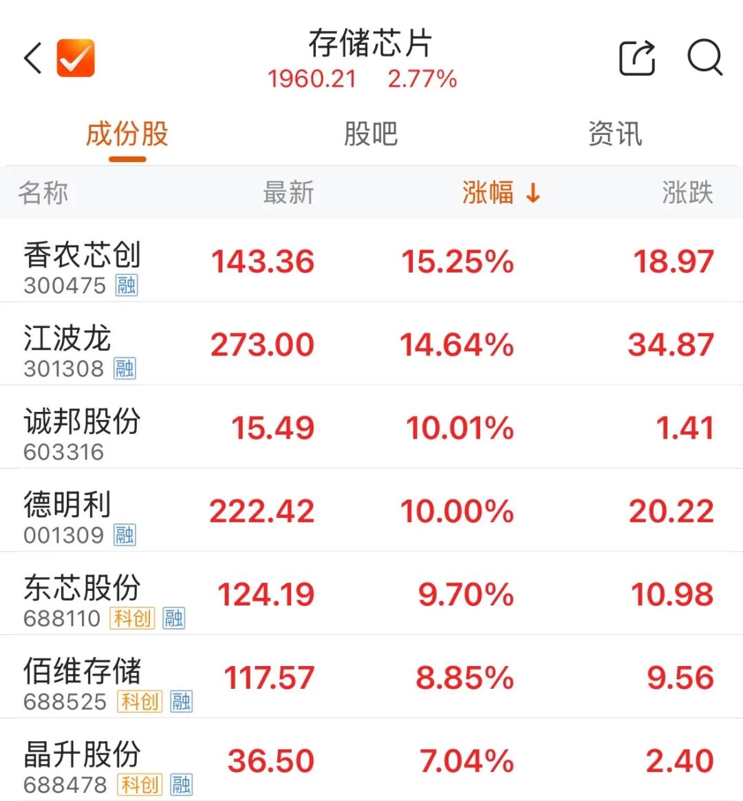 受存储产品价格波动影响,存储芯片概念今日延续强势,香农芯创、江波龙涨超10%,德明利、诚邦股份涨停。