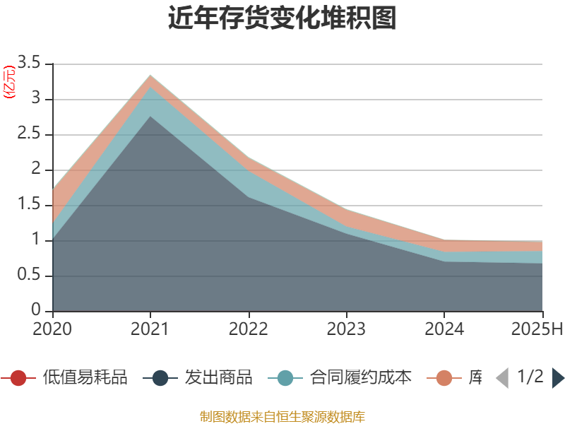 从存货变动来看,截至2025年上半年末,公司存货账面价值为9769.1万元,占净资产的16.33%,较上年末减少284.55万元。其中,存货跌价准备为1360.91万元,计提比例为12.23%。