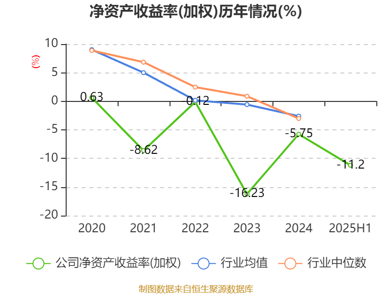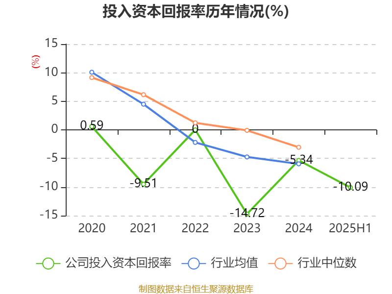 盈利能力方面, 2025年上半年公司加权平均净资产收益率为-11.2%,同比上升3.49个百分点。公司2025年上半年投入资本回报率为-10.09%,较上年同期上升3.38个百分点。