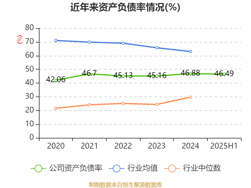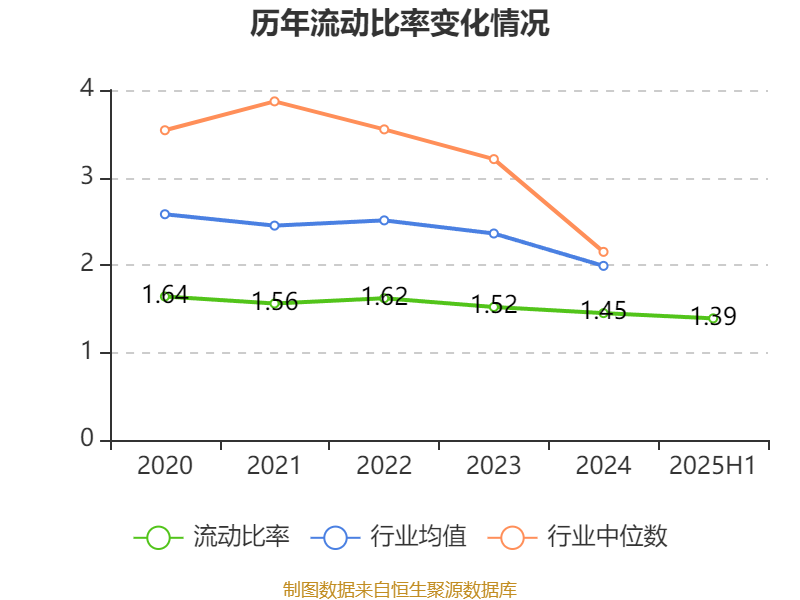 2025年上半年,公司流动比率为1.39,速动比率为1.18。