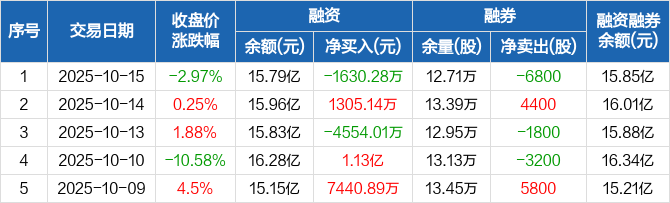 晶盛机电:融资净偿还1630.28万元,融资余额15.79亿元(10-15)