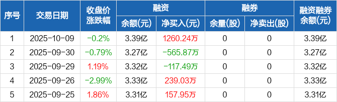 海达股份:融资净买入1260.24万元,融资余额3.39亿元(10-09)