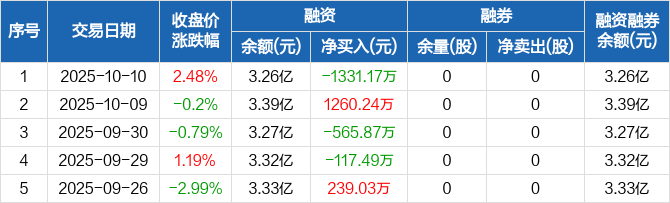 海达股份:融资净偿还1331.17万元,融资余额3.26亿元(10-10)