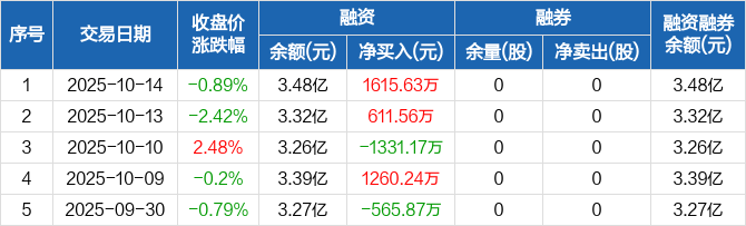 海达股份:融资净买入1615.63万元,融资余额3.48亿元(10-14)