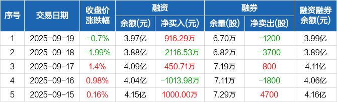 中颖电子:融资净买入916.29万元,融资余额3.97亿元(09-19)