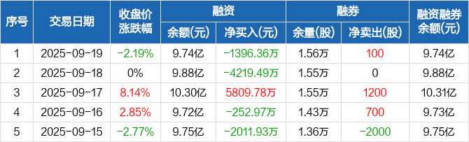 宜安科技:融资净偿还1396.36万元,融资余额9.74亿元(09-19)