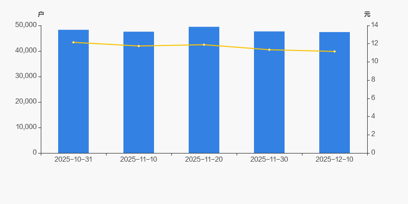2025年10月31日至今,公司股东户数有所下降,区间跌幅为1.84%。2025年10月31日至2025年12月10日区间股价下降8.23%。