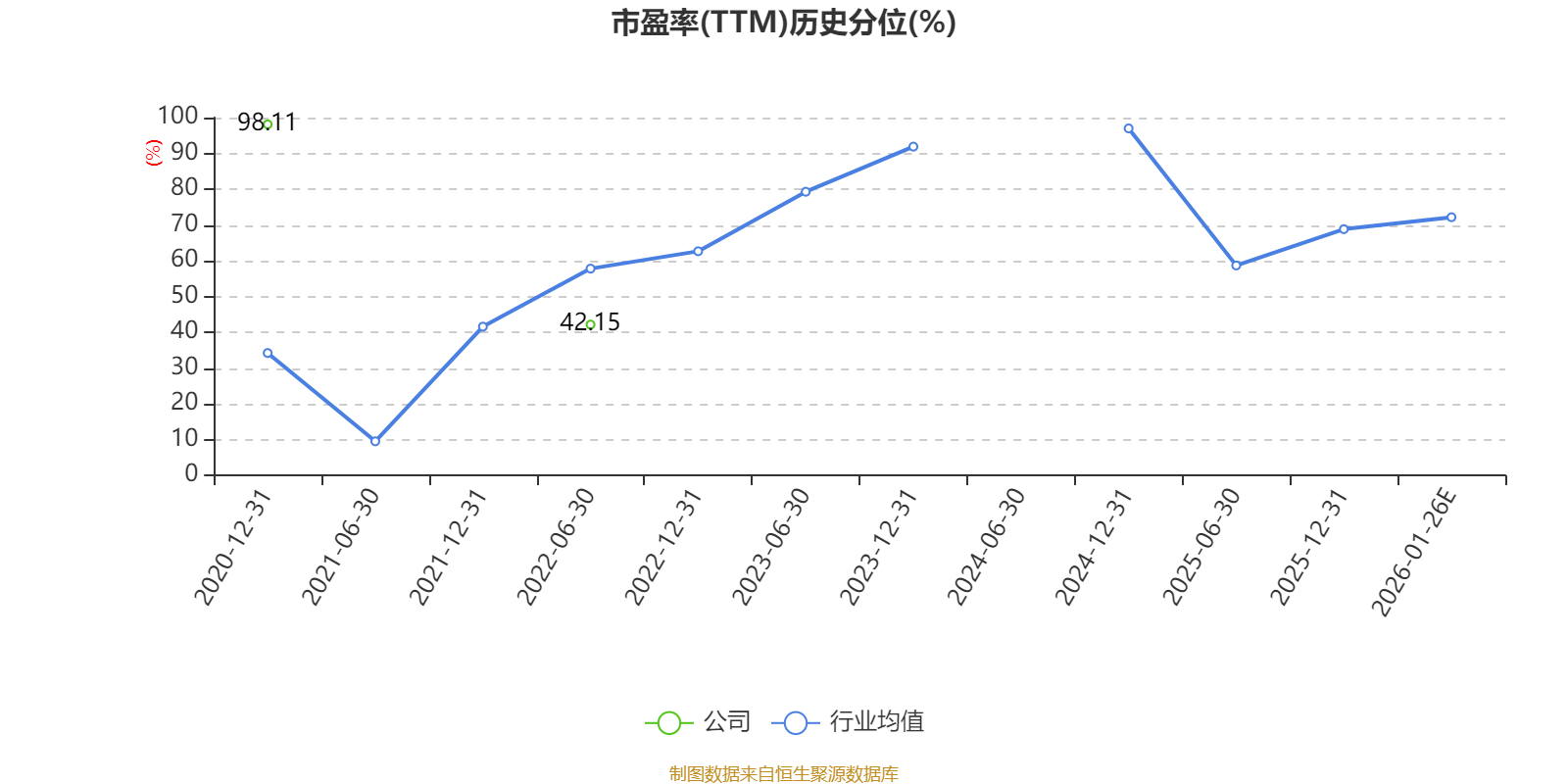 市盈率、市净率为负时,不显示当期分位数,会导致折线图中断。