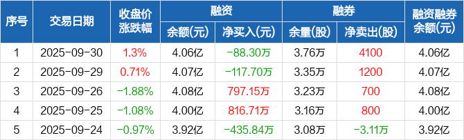 银邦股份:融资净偿还88.3万元,融资余额4.06亿元(09-30)