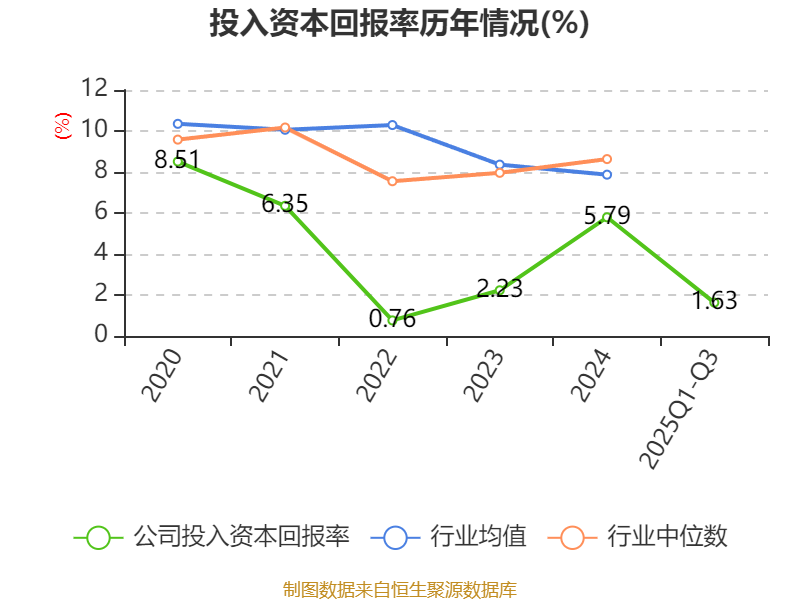 盈利能力方面, 2025年前三季度公司加权平均净资产收益率为1.54%,同比下降2.02个百分点。公司2025年前三季度投入资本回报率为1.63%,较上年同期下降2.03个百分点。