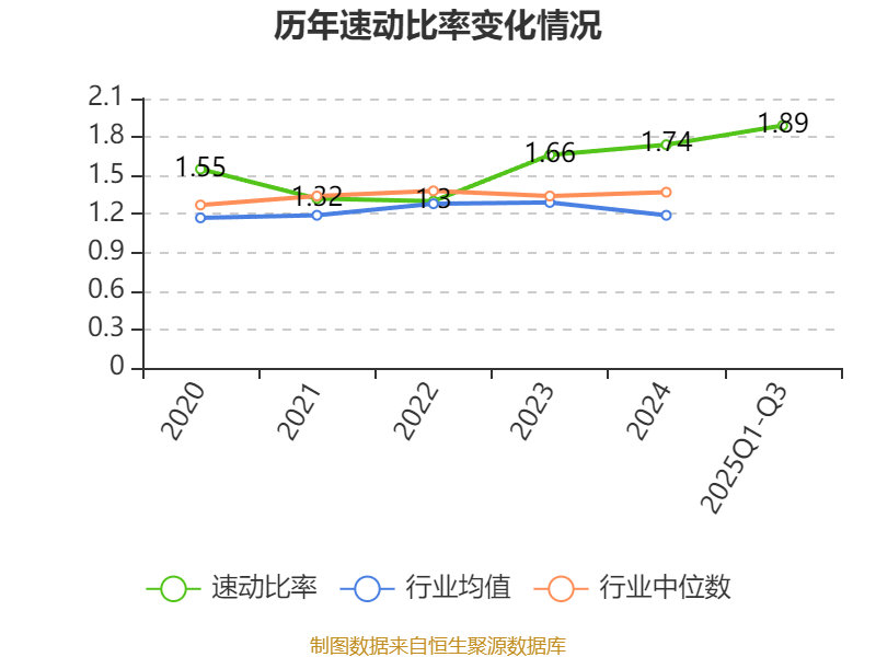 2025年前三季度,公司流动比率为2.87,速动比率为1.89。