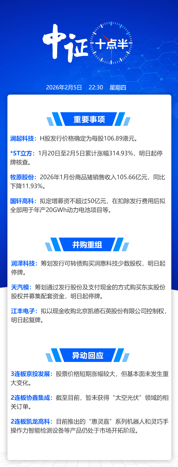 【中证十点半】大涨超314% *ST立方将停牌核查;天汽模筹划重大资产重组 明起停牌