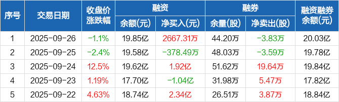 南大光电:融资余额19.85亿元,创历史新高(09-26)