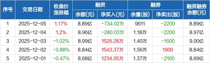 泰格医药:融资净偿还734.02万元,融资余额8.89亿元(12-05)