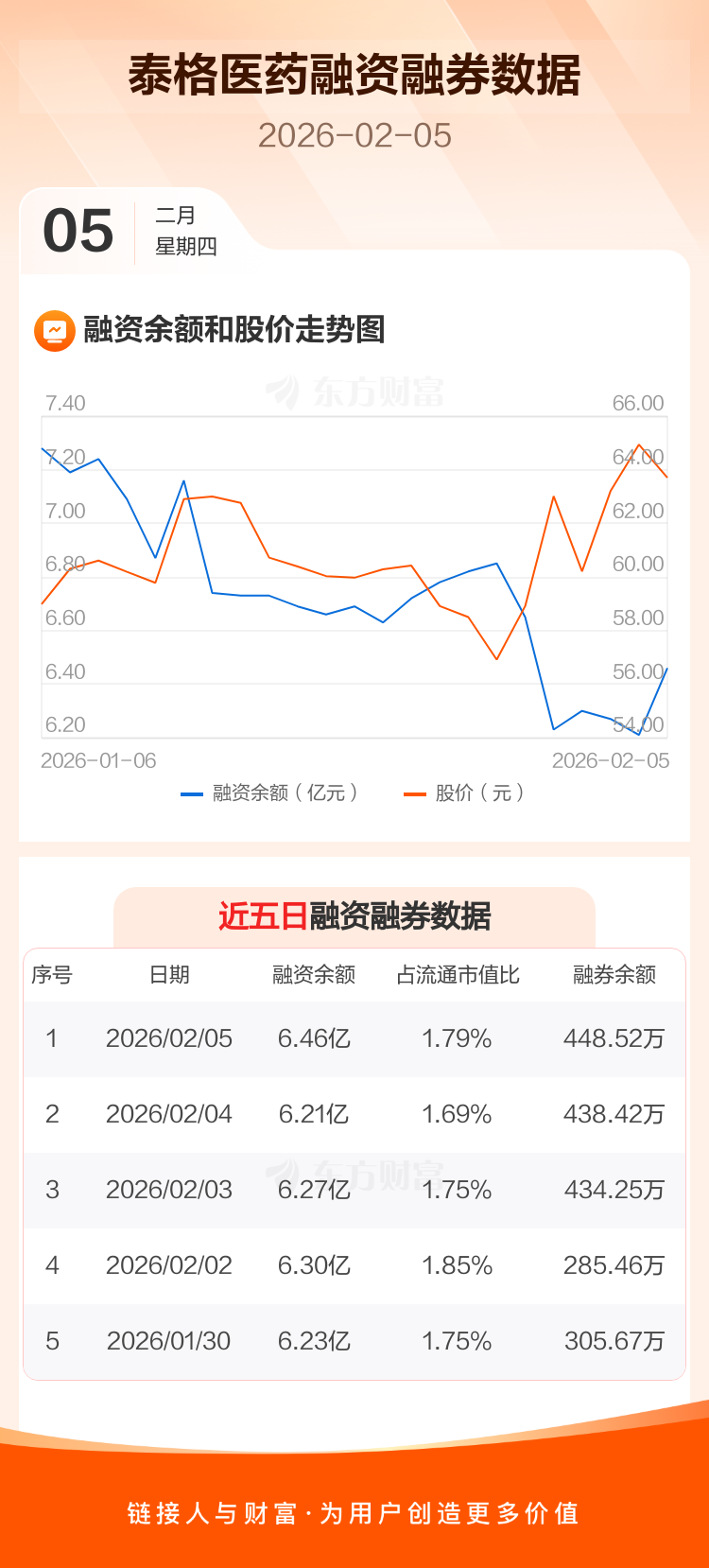 交易所最新数据显示,泰格医药于2026年2月5日获融资买入6119.82万元,融资偿还3625.11万元,当日融资净买入2494.72万元。目前,该股融资余额6.46亿,占流通市值比例为1.79%。