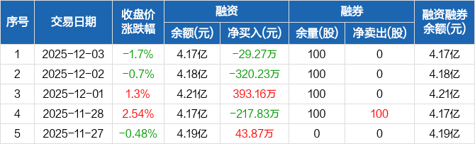 永贵电器:融资净偿还29.27万元,融资余额4.17亿元(12-03)