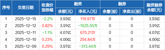 永贵电器:融资净买入119.97万元,融资余额3.93亿元(12-15)