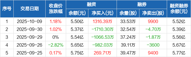 北信源:融资净买入1316.39万元,融资余额5.5亿元(10-09)