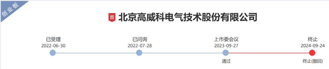 资料显示,高威科是一家专业从事工业自动化等方面的公司。2011年,高威科首次冲刺IPO,但在2012年被否。2015年,高威科再次冲刺IPO,但在2018年撤回申请。2022年6月,高威科第三次冲刺IPO并获受理,2023年9月27日获上市委会议通过,但最终在2024年9月24日因撤回发行上市申请而终止。