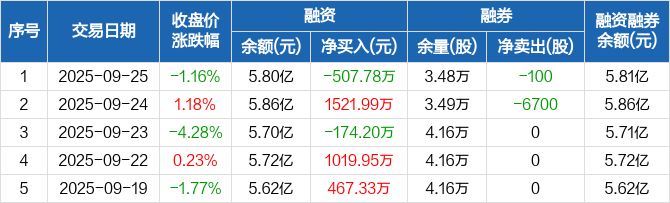 蒙草生态:融资净偿还507.78万元,融资余额5.8亿元(09-25)